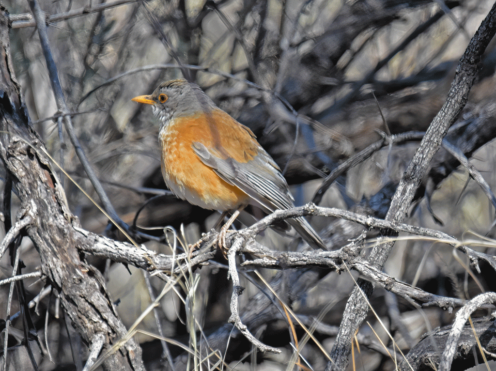 A Rufous-backed Robin had been hanging out there since December, so we finally decided to try and see it too. There were American Robins there as well, so that meant examining every robin carefully. The Rufous-backed Robin is a rare visitor from Mexico. It was hanging out near an old ranch house.