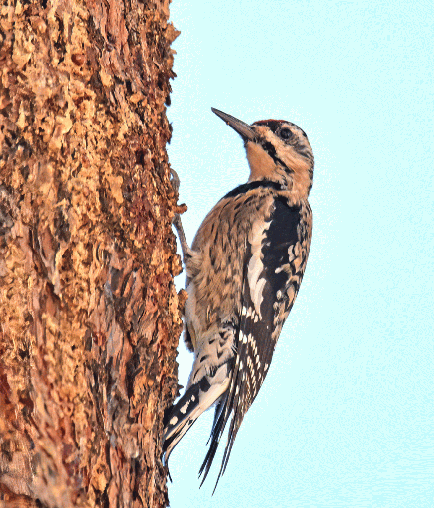 While we were looking for that bird, we spotted another sapsucker. This one was also as rare as the other, but unexpected. This is an immature Yellow-bellied Sapsucker.