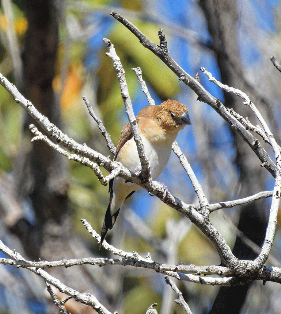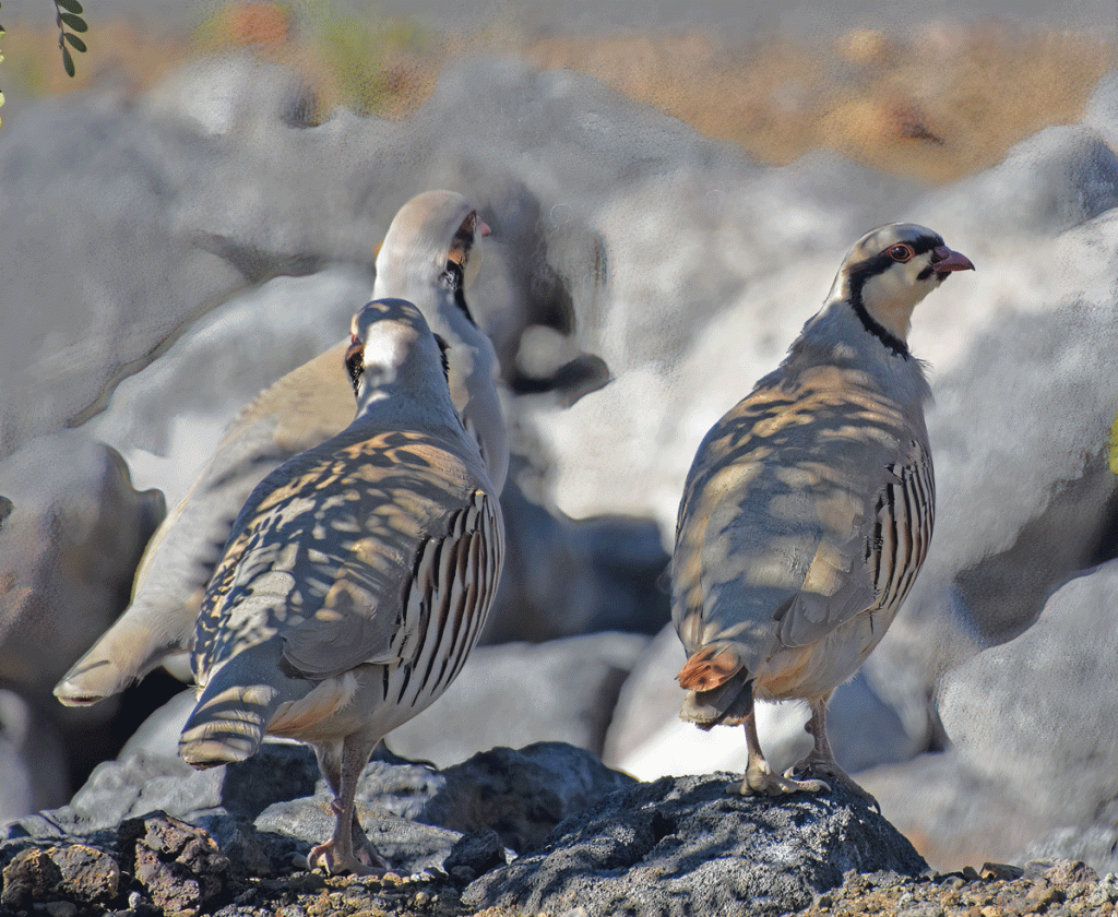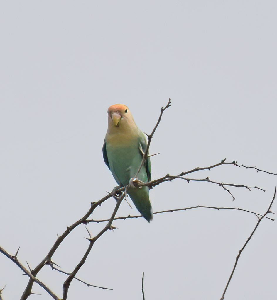 We saw a pair of Chestnut-bellied Sandgrouse, which are native to Africa and India, but they flew off before Doug could get a photo. Our bonus bird was a Rosy-faced Lovebird that perched politely for its photo. A lovebird is a short-tailed parrot native to southwestern Africa. It’s a common pet species, so escapees may occur anywhere. Hawaii and Arizona have feral populations. It was the first time that we had seen one in the wild.