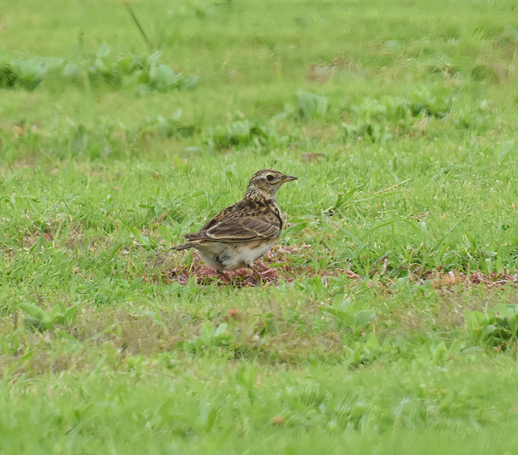 Eurasian Skylarks are common on grassy mountain slopes on the island of Hawaii and in this case, an unused soccer field. The species is common throughout Europe and Asia and was introduced to Hawaii in 1865.