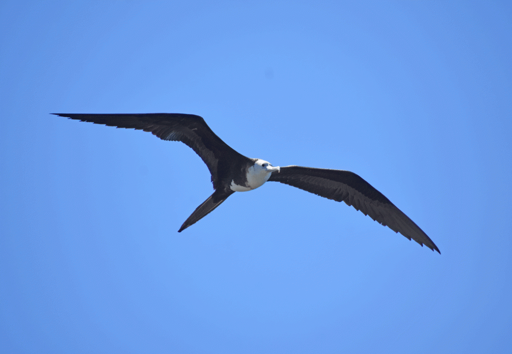We almost didn’t start a “list” because the bird life was sparse, but then we got a good view of this Great Frigatebird and when we paid better attention, we saw twelve species of birds in our 45 minute walk.
