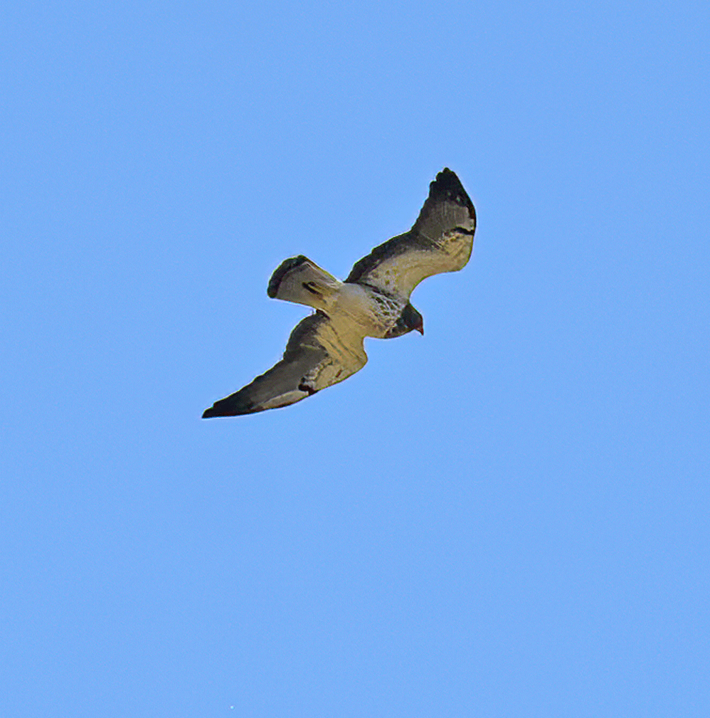 We had a good view of a White-tipped Dove. The photo below shows the difference between a White-winged Dove (background) and the White-tipped. The two species are close to the same size. When a White-winged Dove flies, the large white patch on its wings is prominent, while a White-tipped Dove only has a bit of white on the corners of its tail. The conspicuous red legs of the White-tipped Dove help with identification. White-tipped Doves are widespread in Mexico, Central and South America, but are only found in the US in Southern Texas.