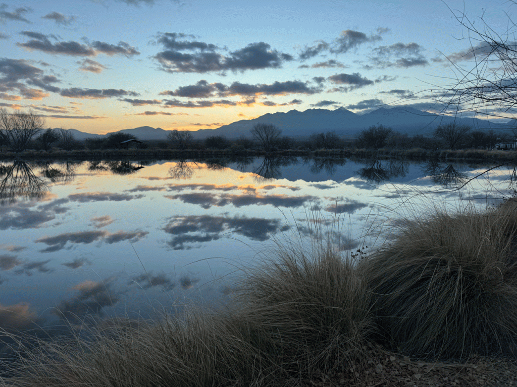 In the middle of January, we drove to Willcox and got there just before sunrise. We watched thousands of Sandhill Cranes take off, but there were thousands still at the shore.