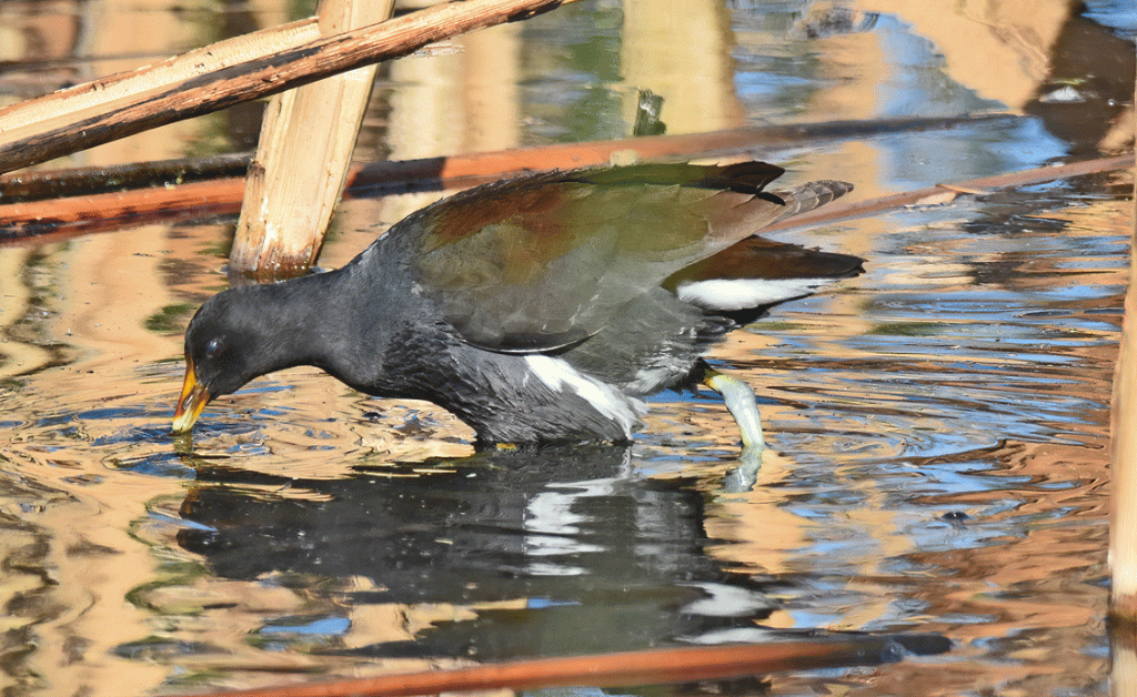 This Common Gallinule is starting to develop the red shield on its head. It should be in fully breeding colour by February. They are in the same family as the more abundant American Coot.