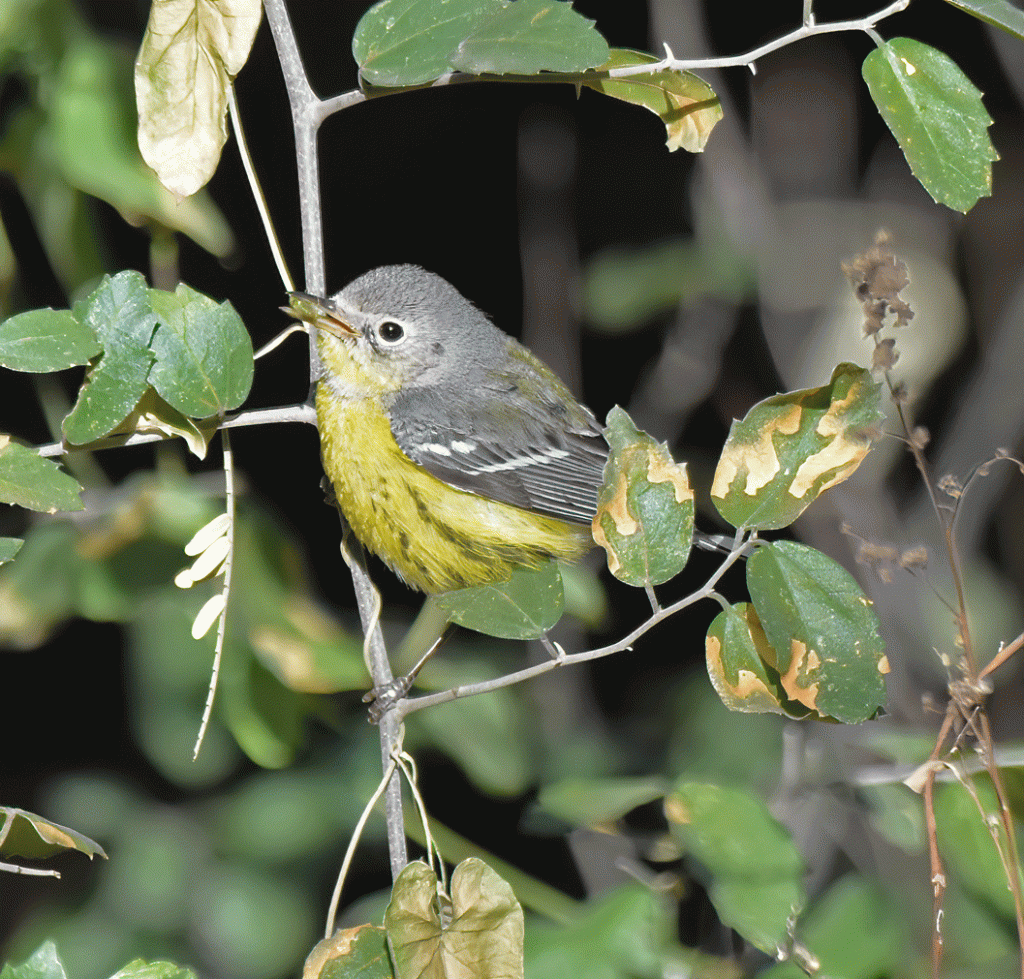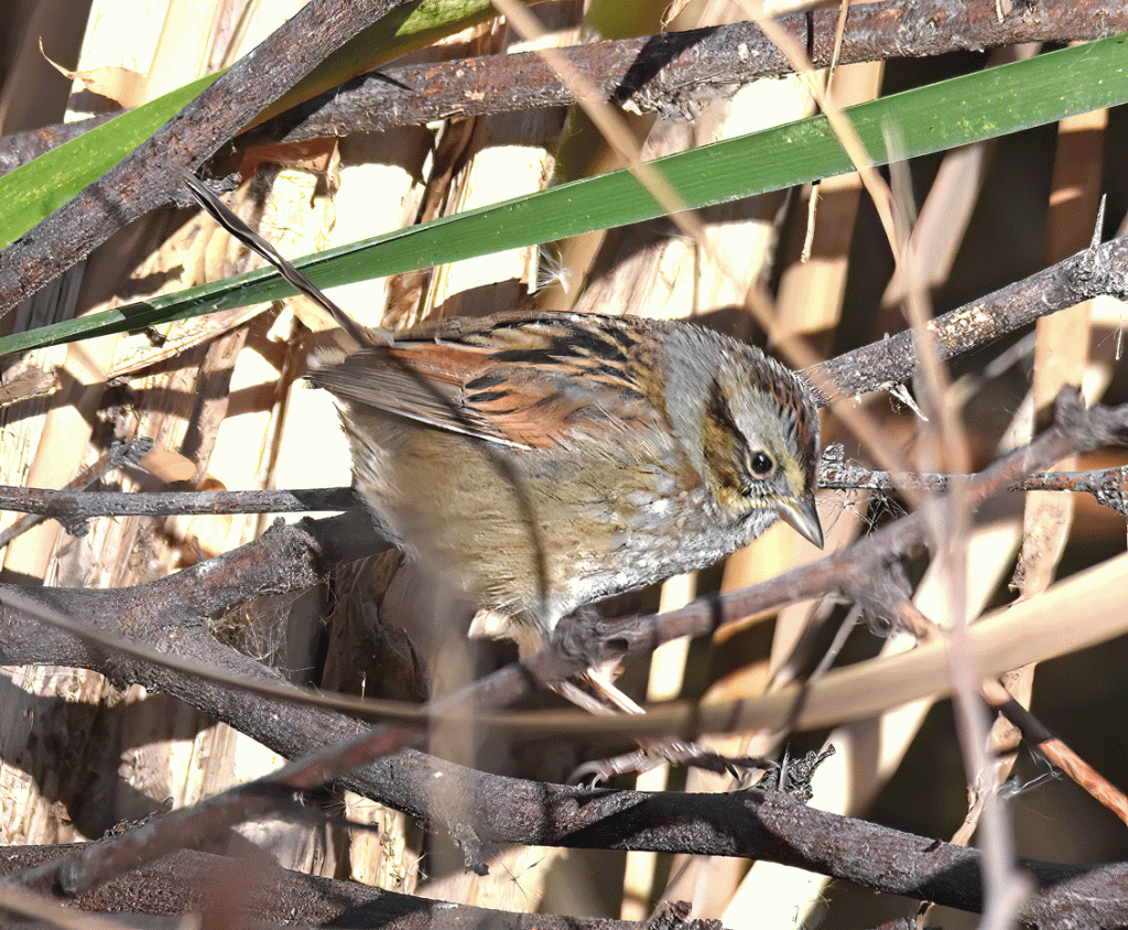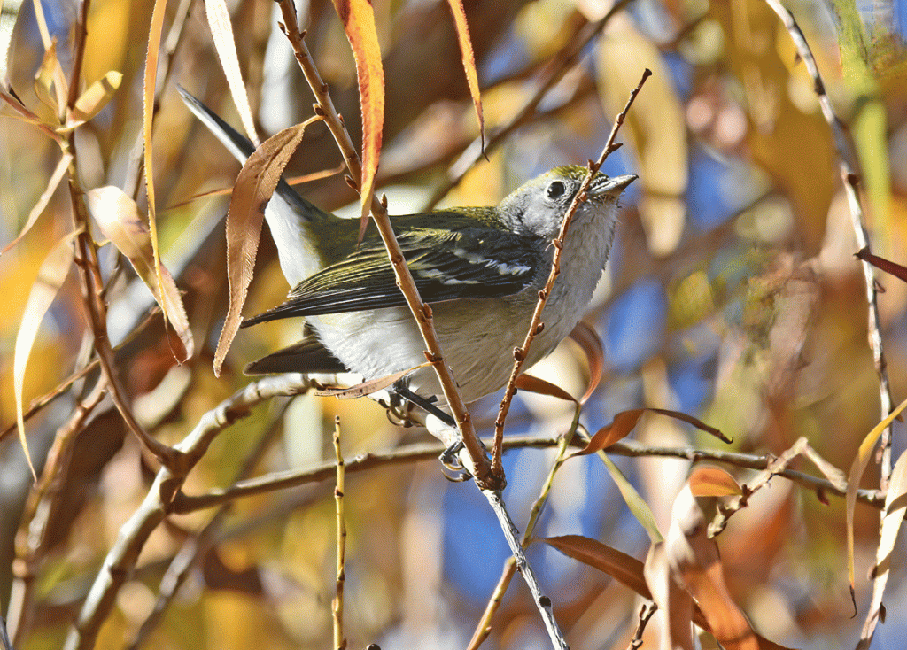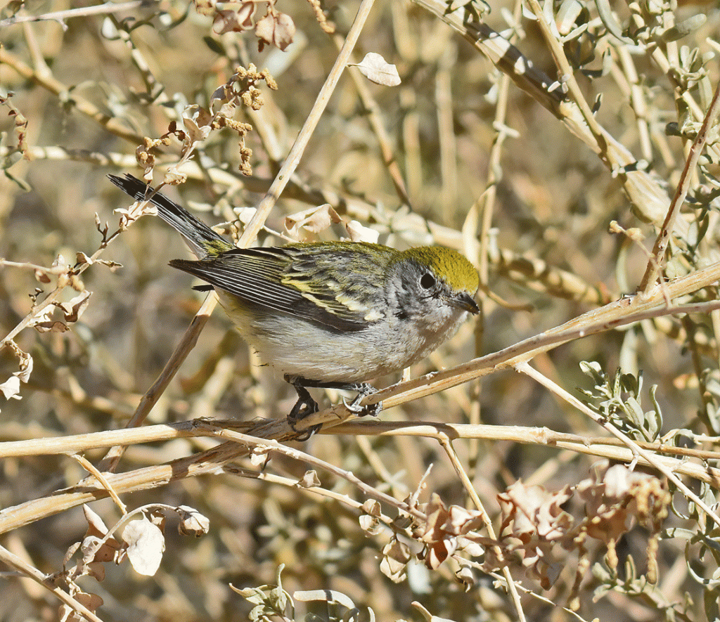 Another rarity at Sweetwater Wetlands was this female or immature male Chestnut-sided Warbler. The species usually winter in southern Mexico and Central America. This one has stuck around the wetlands for several months, so it seems to have found a spot that fulfills its requirements. On the day that Doug took this photo, it was foraging in low bushes near the pathway, seemingly unbothered by people walking by.