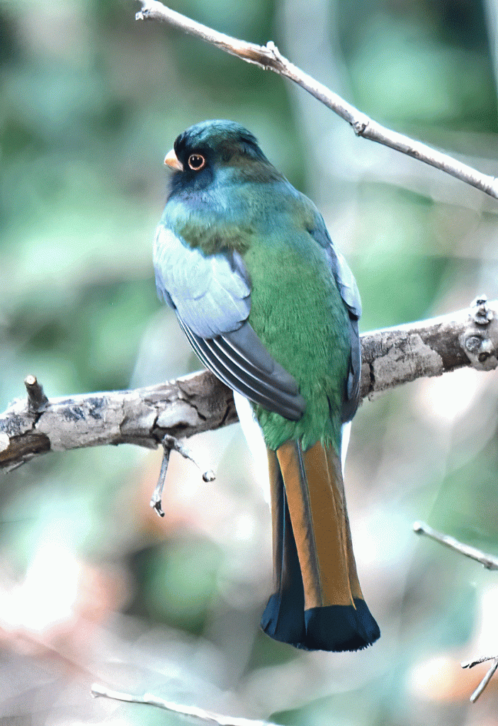 Madera Canyon is famous as a home for the Elegant Trogon. We set off early on January 2nd, prepared to wait all morning if we needed to. The trogon must have been hungry for the pyracantha berries because we it showed up within fifteen minutes. Doug took the photo of its green back and coppery tail; his favourite view.