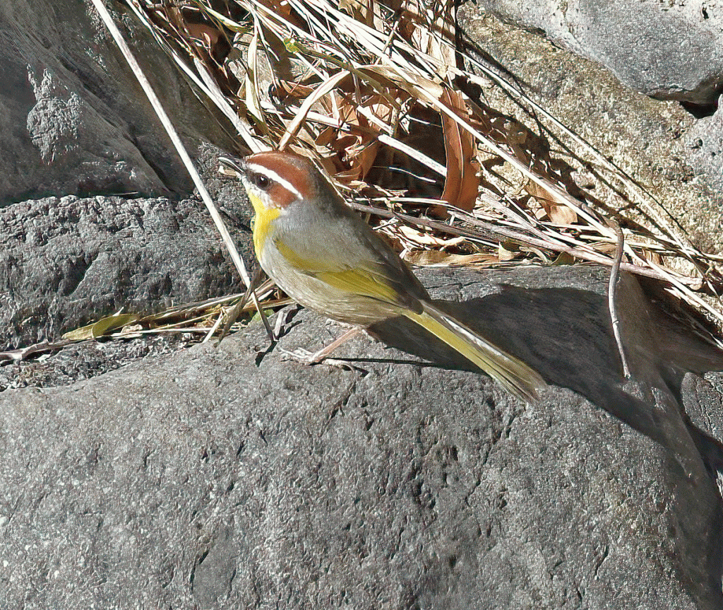 Both times, we were lucky enough to see this rare Rufous-capped Warbler. It likes to feed on insects near the bottom of an old dam, where there is a shallow pool.