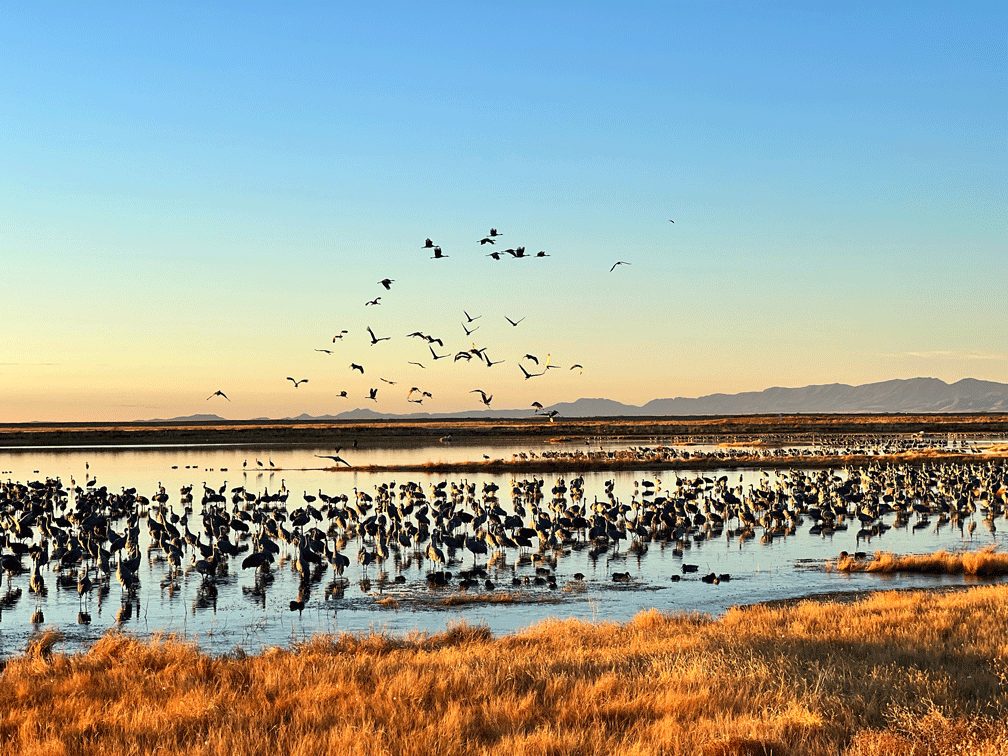 Here’s another view of Lake Cochise in Willcox. The cranes head out to the surrounding fields to feed and then return in the afternoon.