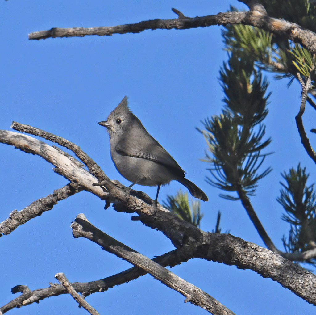We heard the Juniper Titmouse right away, but it took us a little bit to get our eyes on one. Luckily one popped up in the sunshine. They are plain and drab but also cute like every other titmouse. They live year-round in Arizona at higher elevations. We didn’t hear or see a Pinyon Jay.