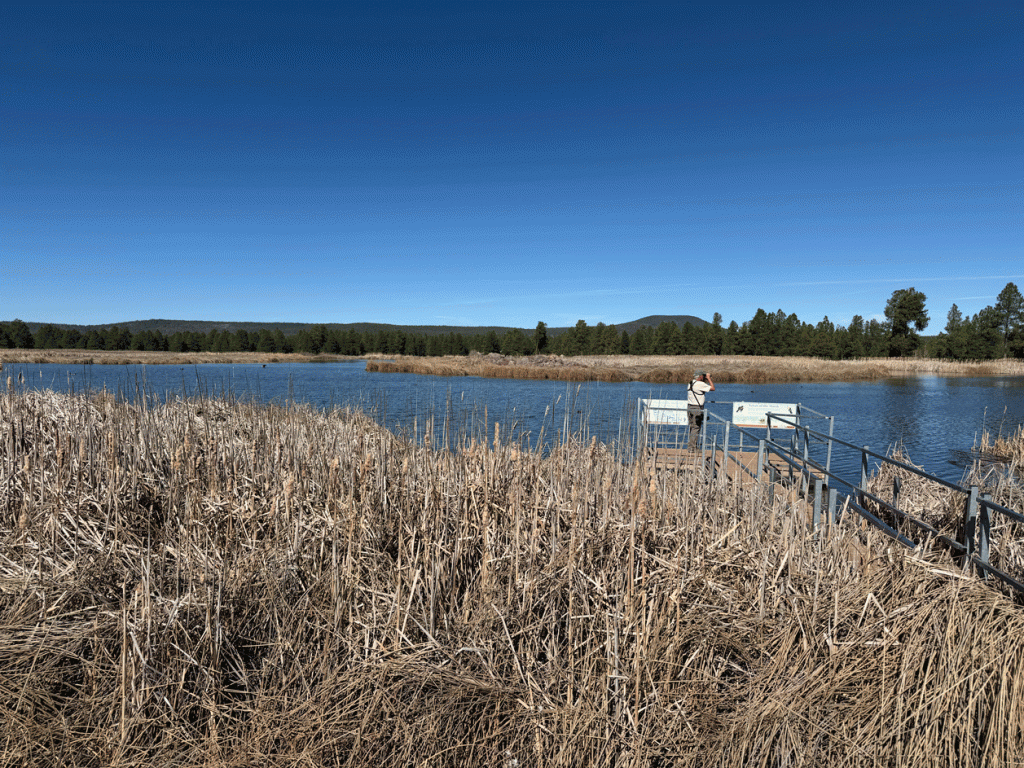There was no point returning to the heat of Tucson early, so we checked out the Kachina Wetlands that are just south of Flagstaff. Like most hotspots with water in Arizona, reclaimed water is used to provide bird habitat. Pond #1 (below) always has water and one or two other ponds have water if there is excess. This pond had the most Virginia Rails that we have ever experienced in one location. There was a rail in each corner and another one in between along one side.