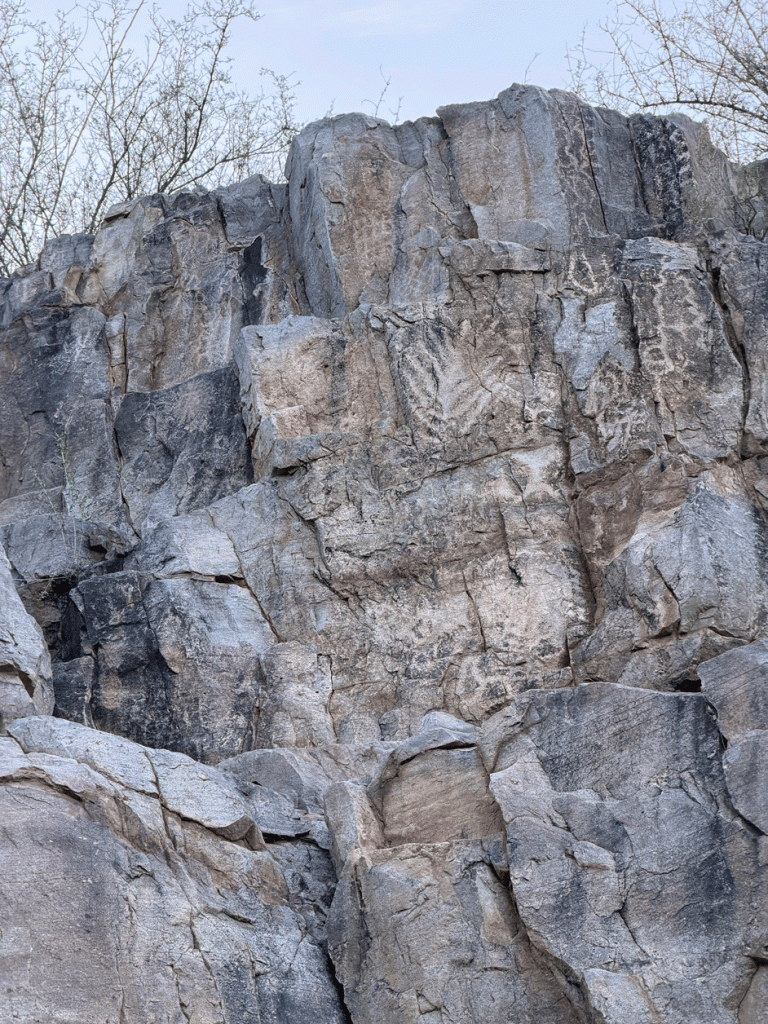 We got to the old dam area and the petroglyphs in half an hour. Every time we do this hike we take another photo of the ancient artwork. Perhaps we’ve shared this same view.