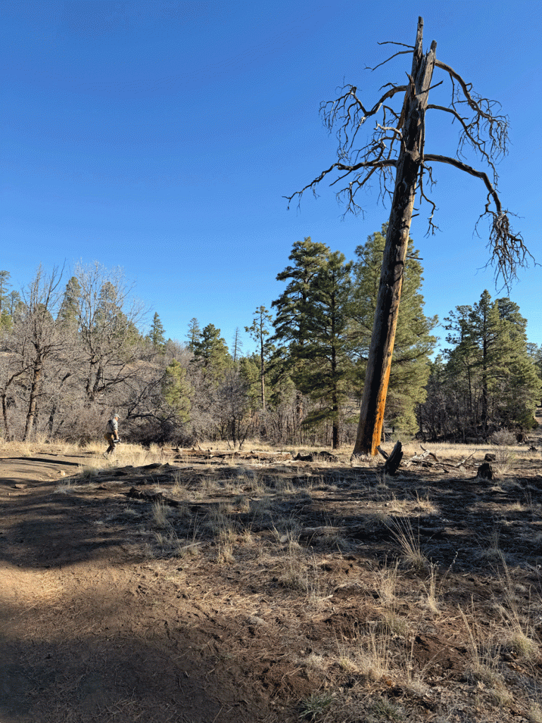 The next day, we visited Picture Canyon on the Rio de Flag, which had the right habitat for Pinyon Jays, although they weren’t there that day. We’ve heard birders describe the jays as being “ephemeral.” Yet even though we didn’t see those birds, we saw some other birds as well as some interesting country.
