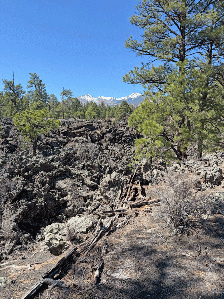 Here’s another view of the Bonita Lava Flow, with the San Francisco Peaks in the background. We kept our eyes out for the elusive Pinyon Jays, but only saw Stellar’s Jays.