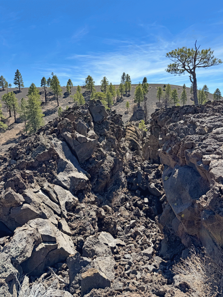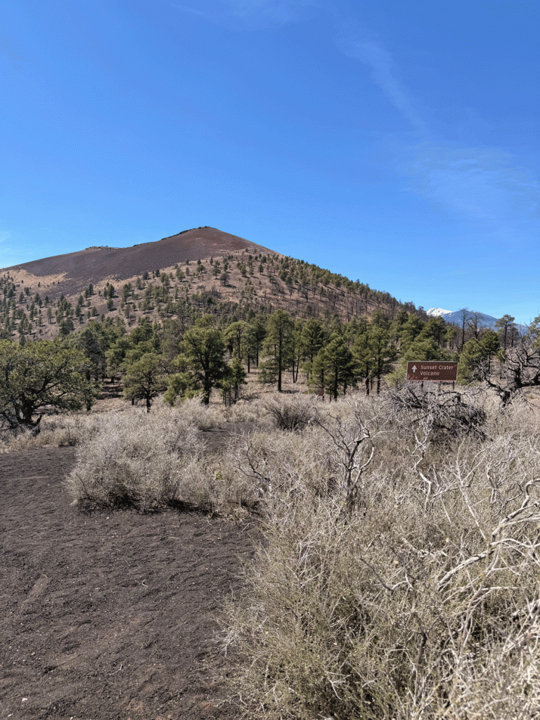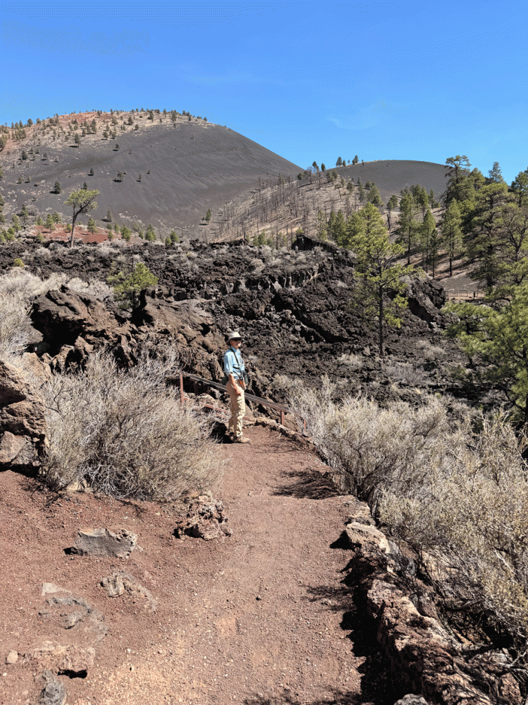 It was still early in the day, so were drove to Sunset Crater Volcano National Monument. Here’s a view of the crater from an overlook at the border of the monument. Sunset Crater erupted about 900 years ago and is the most recent volcanic eruption in Arizona.