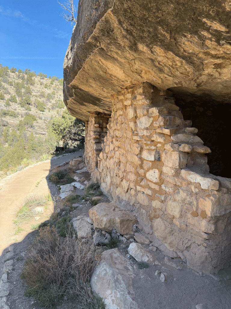 The trail goes right past some ancient dwellings, that were built on the limestone cliffs between 1125 and 1250.