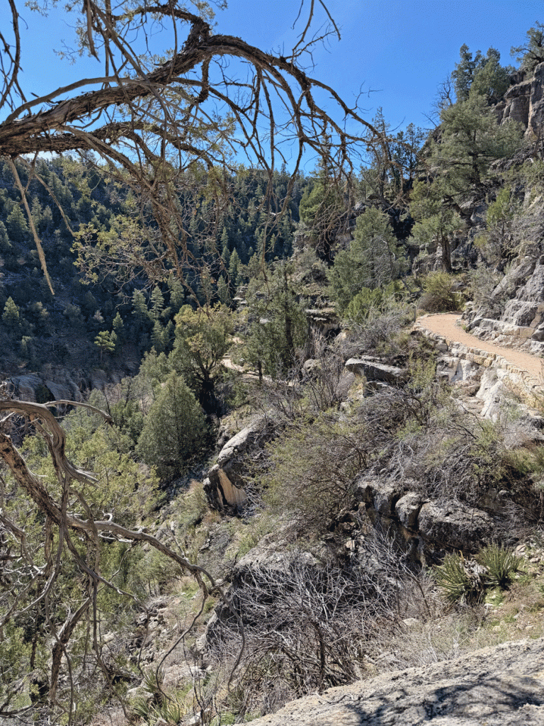 Next we went to Walnut Canyon National Monument and got there for their nine o’clock opening. The monument was established in 1915, to help preserve the cliff dwellings that are found throughout the canyon that were being damaged by pot hunters.
